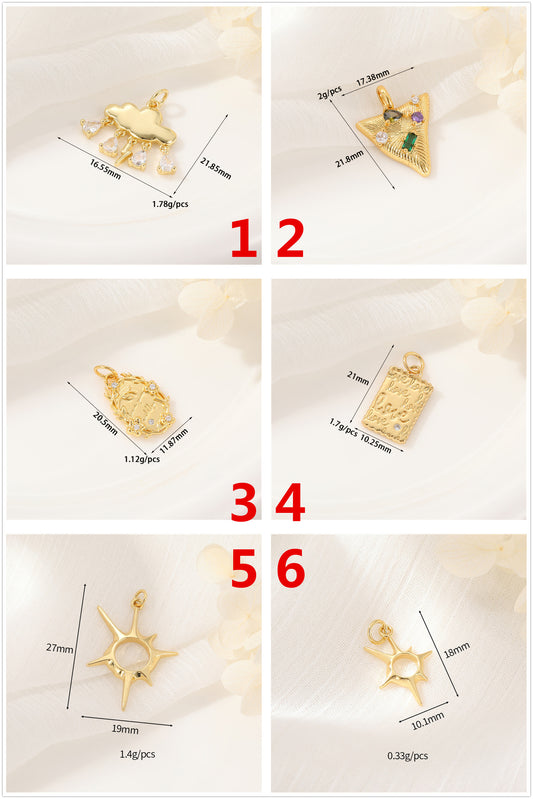 2 winzige Wolken-Dreieck-Oval-Rechteck-Stern-Charm-Anhänger mit Strasssteinen verziert, 14 Karat GF
