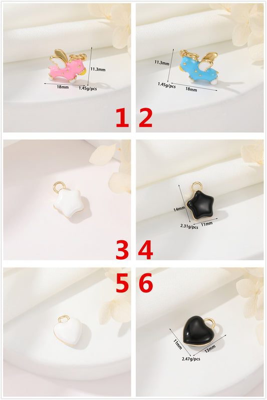 2 Flyhorse Stern Herz Mond Muschel Charm Anhänger Emaille Epoxy 14K GF