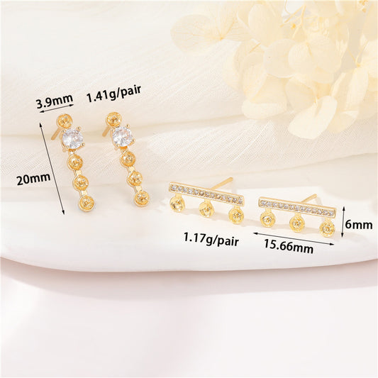 4 Ohrstecker mit mehreren Stäbchen, Strassverzierung, 14K GF, halbgebohrte Perle, Rohling