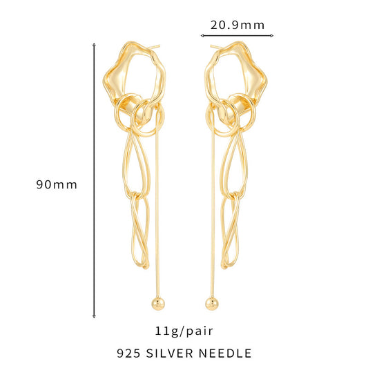 4 Kabelketten-Ohrstecker mit geschmolzenem Kreis, 14-karätige GF-Ohrringe