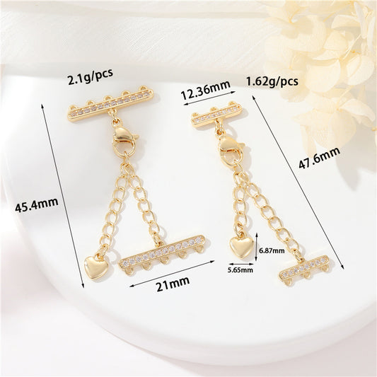 2 mehrfach geschlungene Stab-Karabinerverschlüsse mit verlängerter Kettenverlängerung, mit Strasssteinen verzierter 14-karätiger GF-Anhängerverschluss