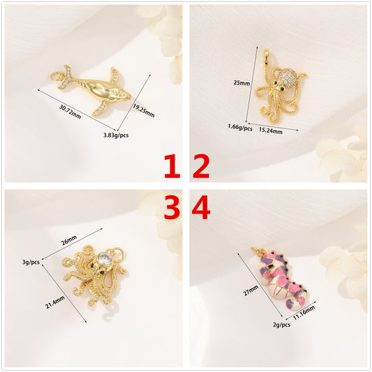 2 Wale, Oktopus, Seepferdchen, Muschel, Muschel, Seestern, Koralle, Qualle, Charm-Anhänger, Strassverzierung, 14 Karat GF