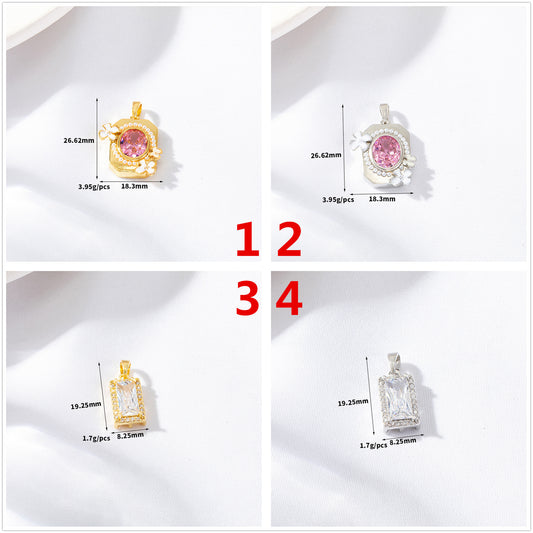 2 ovale Diamant-Quadrat-Rechteck-Charm-Anhänger mit Strassverzierung aus 14-karätigem GF