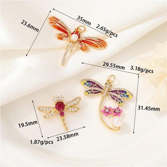 2 Libellen-Charm-Anhänger mit Strassverzierung aus 14-karätigem GF