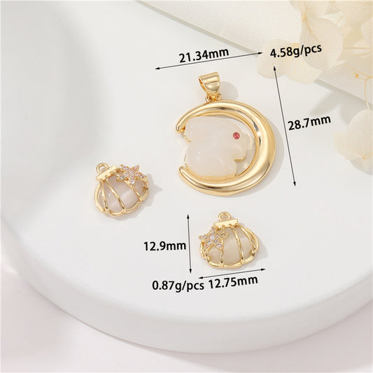 2 Mond-Hasen-Muschel-Seestern-Charm-Anhänger, Harz, Strass, verziert, 14 Karat GF