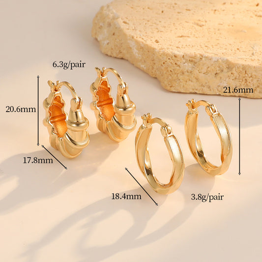 4 klobige, gezwirnte runde Kreis-Creolenohrringe aus 14 Karat GF