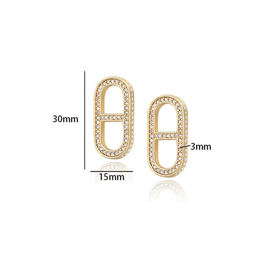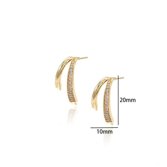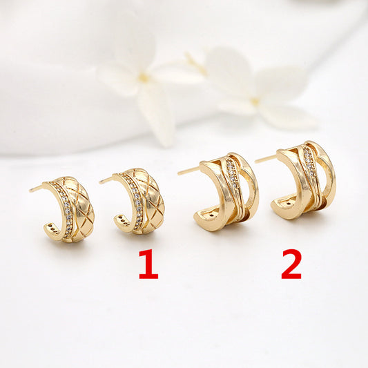 4 halbkreisförmige klobige Ohrstecker mit Strassverzierung aus 14-karätigem GF