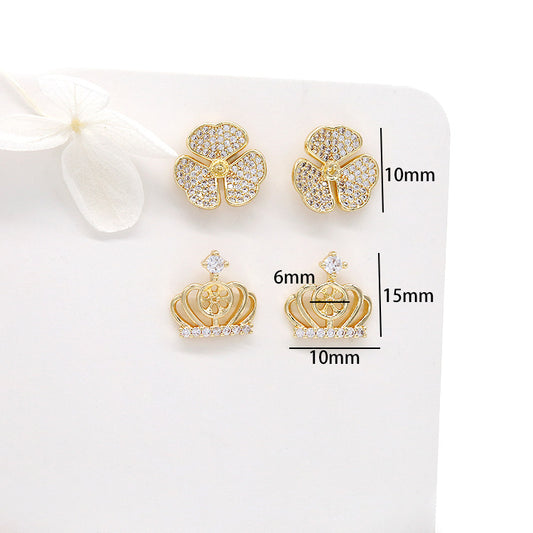 4 Ohrstecker mit Blumenkrone, Strassverzierung, 14K GF-Ohrring, halbgebohrte Perle, Rohling