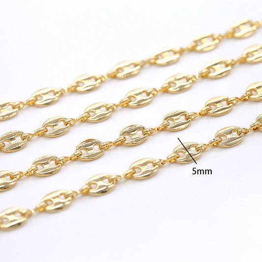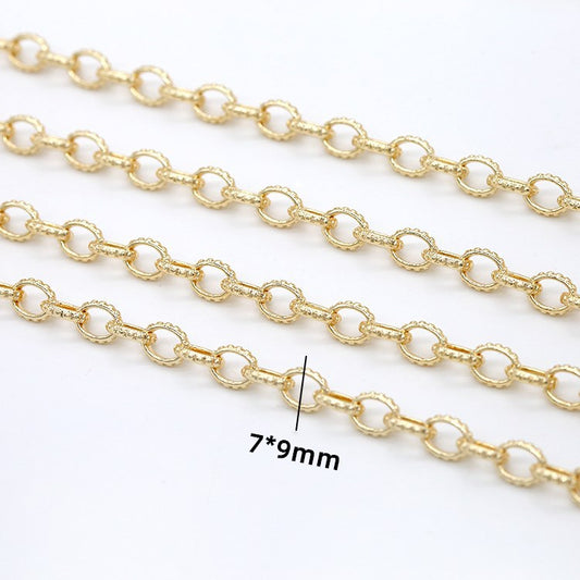 2 Meter lange Carving-Oval-Glieder-Kabelkette aus 14-karätigem GF