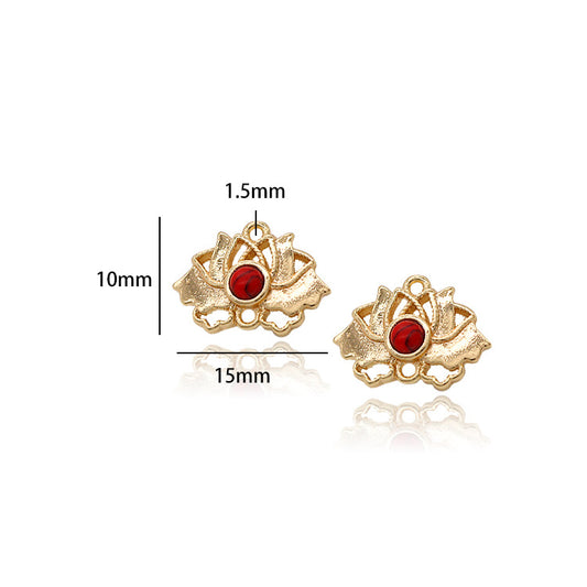 10 doppelt geschlungene Lotus-Blumen-Charm-Verbindungsstücke, Türkis, verziert, 14 Karat GF