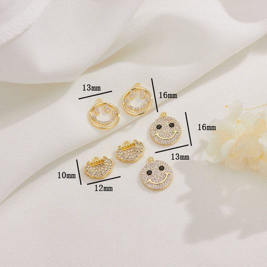 2 Charm-Anhänger „Lächelndes Gesicht“ mit Strassverzierung aus 14-karätigem GF