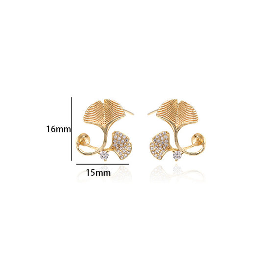 4 Ginkgo-Blatt-Ohrstecker, mit Strasssteinen verziert, 14-Karat-GF-Ohrring, halbgebohrte Perle, Rohling