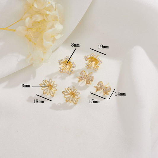 4 Ohrstecker mit floraler Schleife, Strassverzierung, 14K GF-Ohrring, halbgebohrte Perle, Rohling