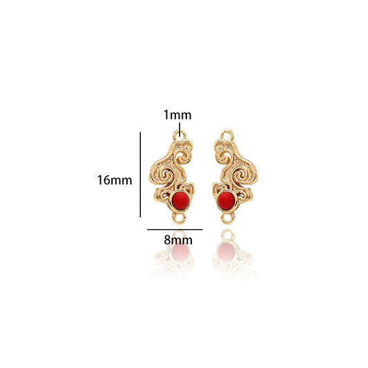 4 Wolken-Ohrstecker mit Öse, verziert mit türkisfarbenem 14-karätigem GF-Ohrring