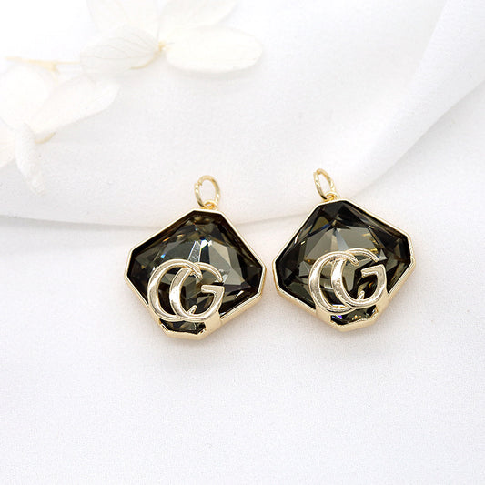 2 CG-Quadrat-Charm-Anhänger mit Strassverzierung aus 14-karätigem GF