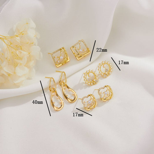 4 Kreis-Ohrstecker mit Blumenmuster, mit Perlen und Strasssteinen verziert, 14-Karat-GF-Ohrring