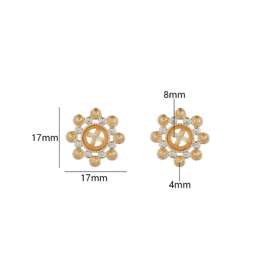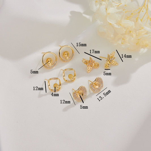 4 Ohrstecker mit Blumenmuster, Strassverzierung, 14-Karat-GF-Ohrring, halbgebohrte Perle, Rohling