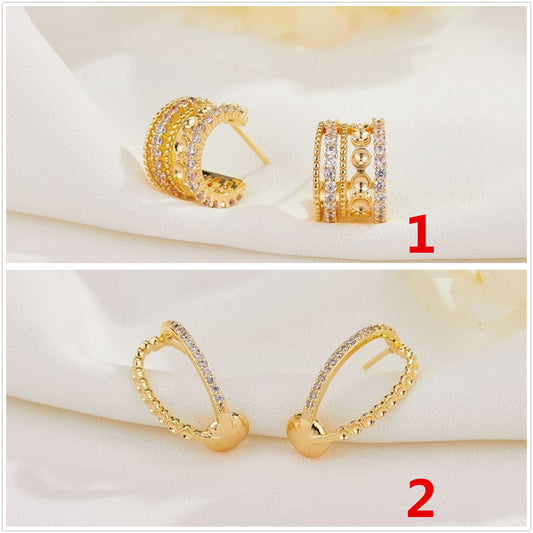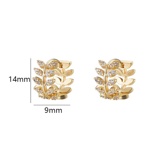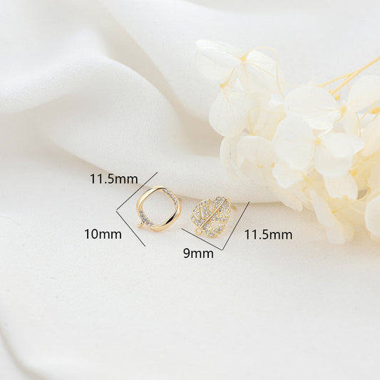 4 quadratische, kreisförmige Blatt-Ohrstecker mit Schleife, Strassverzierung, 14-Karat-GF-Ohrring