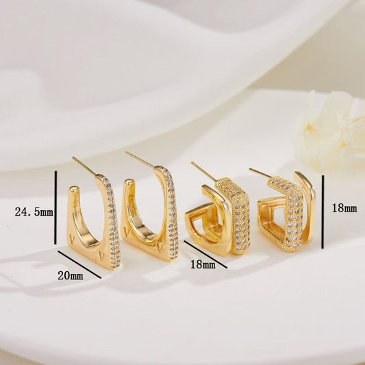 4 rechteckige Creolen mit Öse, mit Strasssteinen verziert, 14-Karat-GF-Ohrring