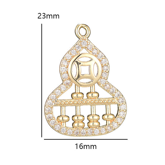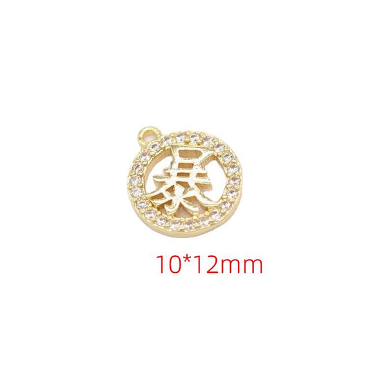 5 chinesische Schriftzeichen 發 財 暴 富 Charm-Anhänger mit Strass verziert 14K GF