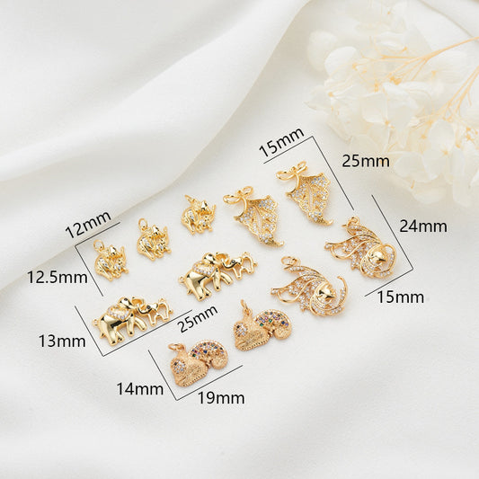 2 Elefanten-Traube-Chamäleon-Schmetterlings-Charm-Anhänger mit Strasssteinen, verziert aus 14-karätigem GF