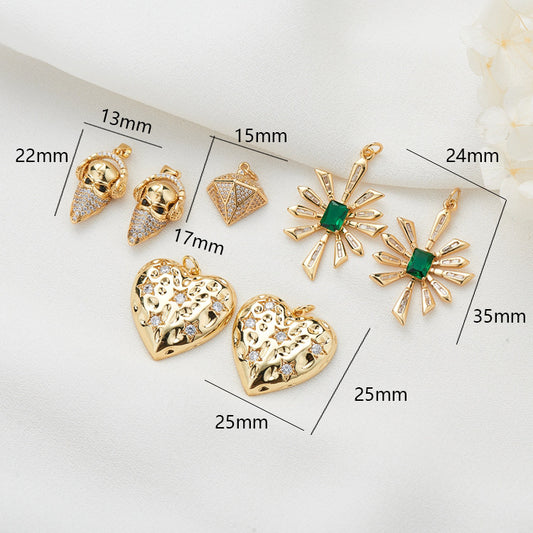 2 Totenkopf-Diamant-Herz-Blumen-Charm-Anhänger mit Strassverzierung aus 14-karätigem GF