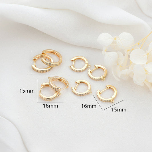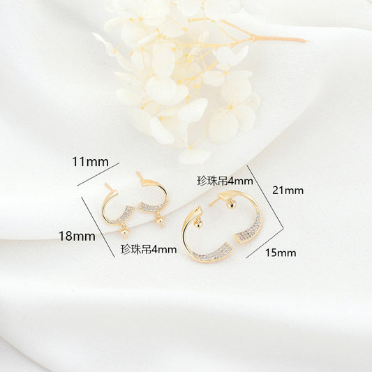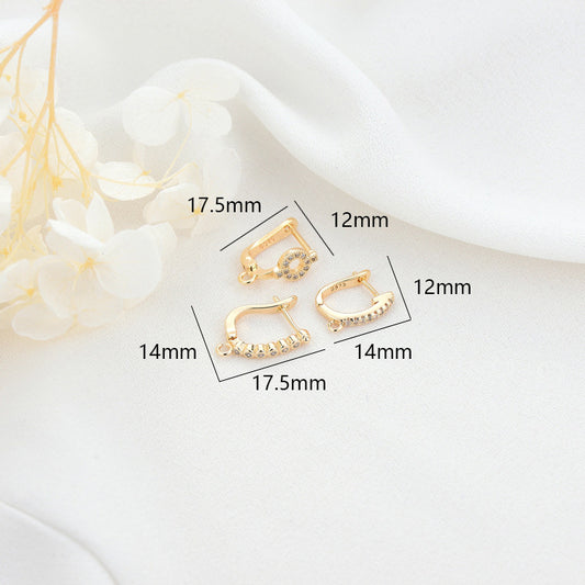 4 Halbkreis-Gürtel-Ohrstecker, mit Strasssteinen verziert, 14-Karat-GF-Ohrring, halbgebohrte Perle, Rohling