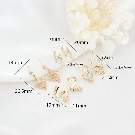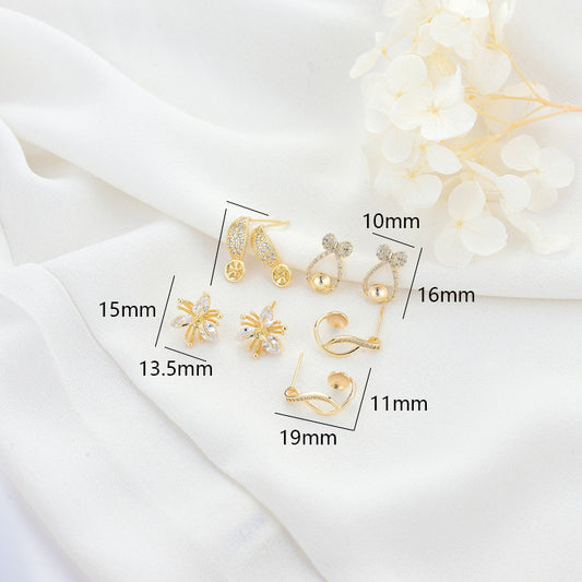4 Ohrstecker mit Blumenranken-Motiv, Strassverzierung, 14-Karat-GF-Ohrring, halbgebohrte Perle, Rohling