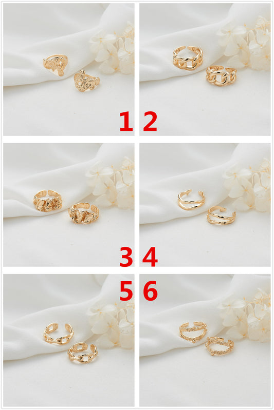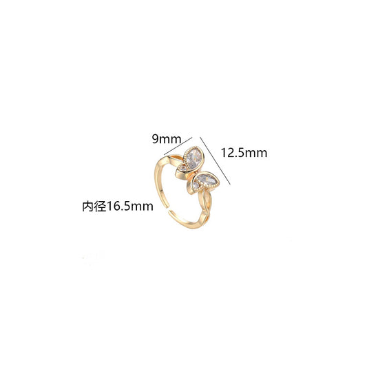 2 Statement-Ring mit offenem Kreis, Schmetterlings-Strassverzierung, 14 Karat GF