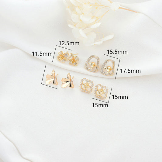 4 runde, quadratische, kreisförmige Schmetterlings-Ohrstecker, Strassverzierung, 14K GF-Ohrring, halbgebohrte Perle, Rohling