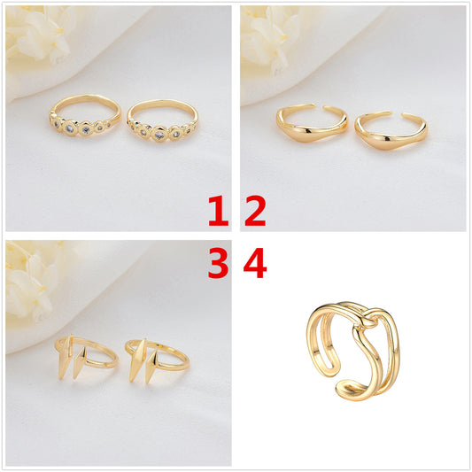 2 Statement-Ring mit offenem Kreis, Rose und Blumenmuster, 14 Karat GF