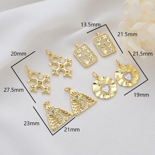 2 gehämmerte Kreuz-Dreieck-Rund-Rechteck-Charm-Anhänger aus Emaille, Epoxidharz, 14K GF, Strass verziert