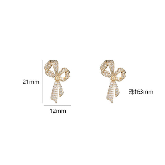 4 Ohrstecker mit Schleife, Strassverzierung, 14-Karat-GF-Ohrring, halbgebohrte Perle, Rohling