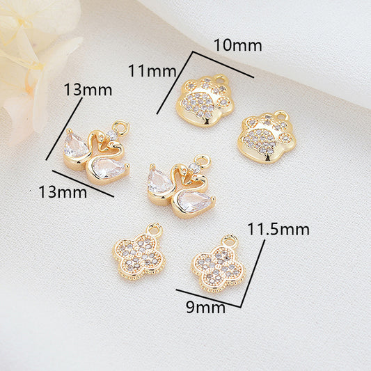 2 vierblättriges Kleeblatt-Charm-Anhänger mit Strassverzierung aus 14-karätigem GF