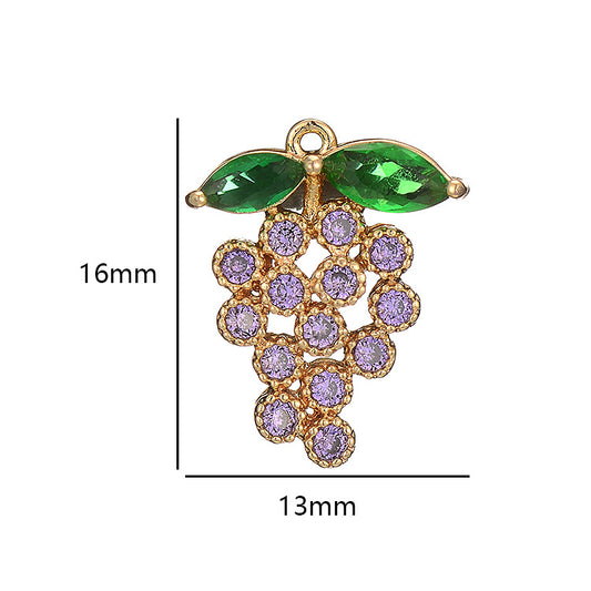 2 Trauben-Charm-Anhänger mit Strassverzierung aus 14-karätigem GF