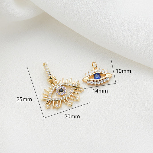 2 Evil Eye Charm-Anhänger aus Kunstharz, mit Strasssteinen verziert, 14 Karat GF