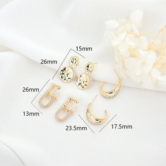 4-Kreis-Charm-Anhänger-Ohrstecker, Statement-Ring, Strassverzierung, 14-Karat-GF-Ohrring, halbgebohrte Perle, Rohling