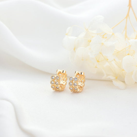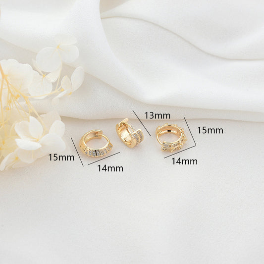 4 hohle runde Creolen mit Strasssteinen, 14-Karat-GF-Ohrring