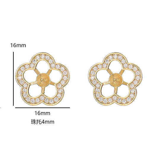 4-Sterne-Kreis-Ohrstecker, mit Strass verziert, 14-Karat-GF-Ohrring, halbgebohrte Perle, Rohling