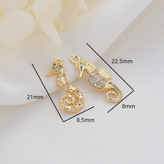 2 Seepferdchen-Charm-Anhänger mit Strassverzierung aus 14-karätigem GF