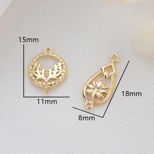 10 doppelt geschlungene runde Rentier-Wassertropfen-Lotus-Blumen-Charm-Verbindungsstücke aus 14 Karat GF