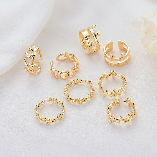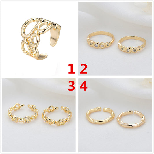 2 hohle, gedrehte Statement-Ringe mit offenem Kreis, 14K GF