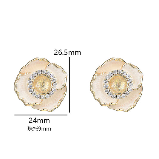 4 Blumen-Ohrstecker, Emaille, Epoxidharz, Strass verziert, 14K GF-Ohrring, halbgebohrte Perle, Rohling