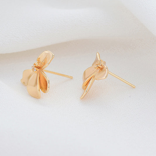 4 Ohrstecker mit Halbblumen-Schleife, 14 K GF, mit Strasssteinen verziert