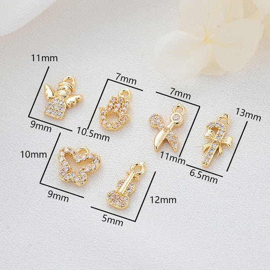 2 Engel Hand Schere Zuckerstange Schmetterling Violine Charm Anhänger Strass verziert 14K GF