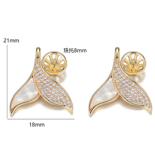 2 Meerjungfrau Walschwanz Charm Anhänger Strass verziert 14K GF halb gebohrte Perle Perlenrohling