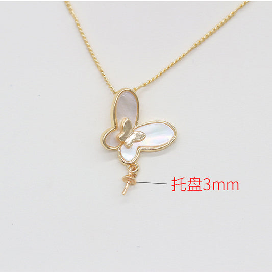 2 Ohrstecker mit Schmetterlingsanhänger und Muschel-Strassverzierung aus 14-karätigem GF