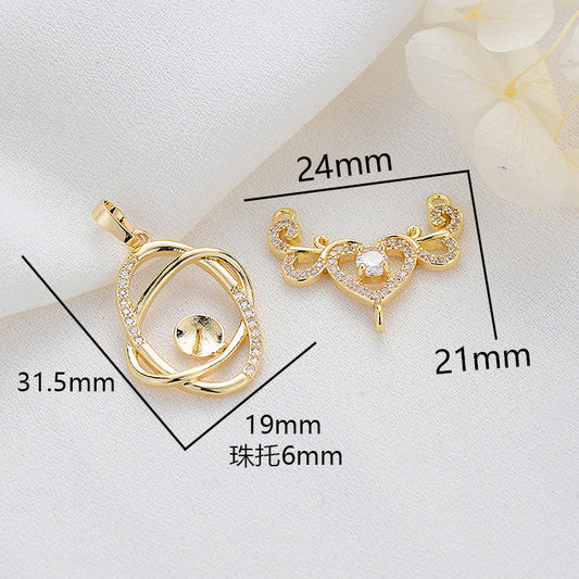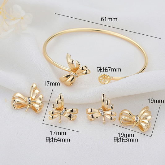 2 Halskette mit Schleifen-Charm-Anhänger, Ohrstecker, Statement-Ring, Armreif, Strassverzierung, 14 Karat GF, halbgebohrte Perle, Rohling