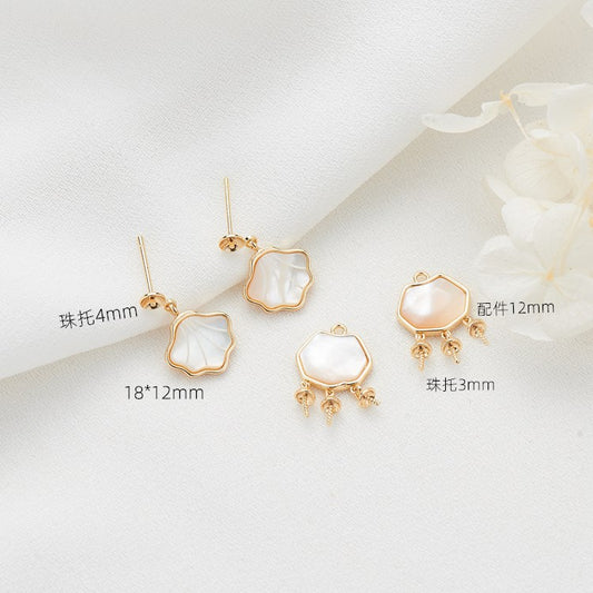 2 Ohrstecker mit Multi-Tropfen-Wolken-Charm-Anhänger und Muschelverzierung aus 14-karätigem GF