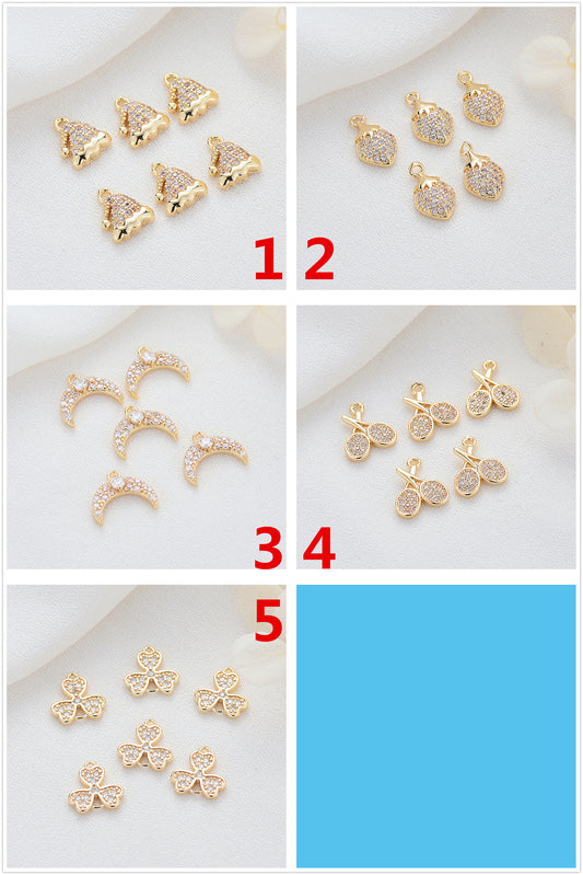 2 Wolken-Charm-Anhänger, Harz-Strasssteinverzierung, 14-karätiges GF